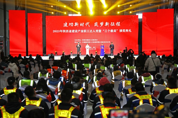 12月21日下昼,由陕西省建造工会主持、中建八局西北分公司经办的“立功新期间 筑梦新征途”2023年陕西省建造产业员工达东谈主秀暨“三个最好意思”受奖庆典在西咸新区泾河新城光伏新动力产业园样子工地举行。陕西省总工会党组通告、常务副主席王军,省总工会副主席、党构成员高莉、王永岗出席并受奖。